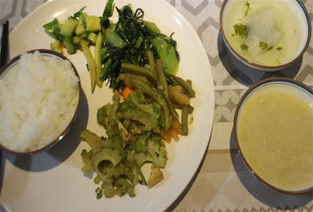 雨聲小了,一只貓咪在喵嗚喵嗚地叫喚。我已熟悉它的聲音,卻還沒有見過它。我出門去吃午飯,走向距離我最近的一號食堂,親善堂。如果步行100米,只花10塊錢就能吃上一頓有機素食自助,輕松滿足食材多樣化的需求,那我是不是并不需要大冰箱?