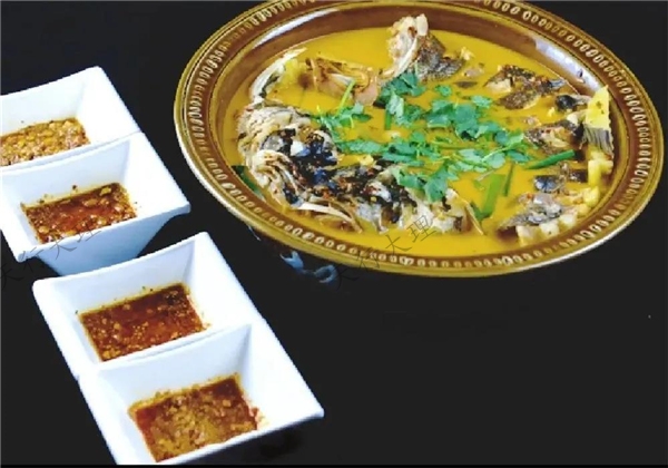 大理酸辣魚,味美鮮香,酸木瓜的酸夾雜著其特有的果香,干辣椒面與糟辣椒搭配而成的辣,酸辣可口,讓人百嘗不厭,是白族人家都喜歡的一道宴客菜。
