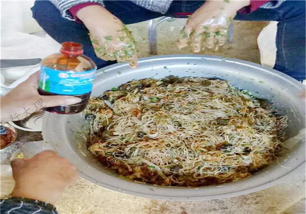 大理人自古熱情好客,請吃殺年豬飯是民間的傳統(tǒng)習(xí)俗,殺年豬時友人、親戚、鄰里相聚來吃殺年豬飯共享美味和快樂,而“肝生”則是彌渡殺年豬的宴席上最醉人的滋味,彌渡人生生世世難以割舍的鄉(xiāng)愁。